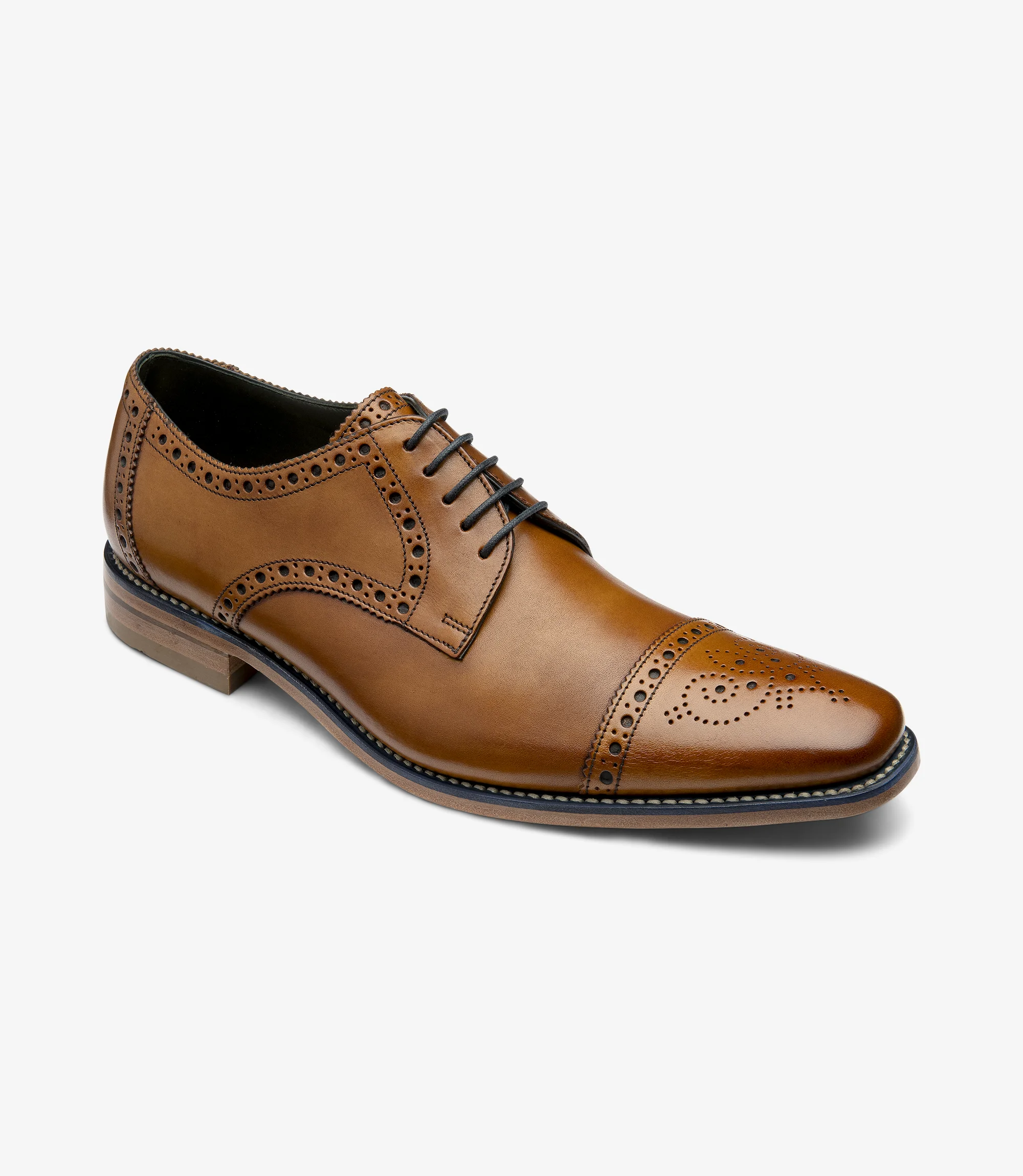 Featuring a straight toe-cap with some light ‘punched’ decoration around the toe or wing-cap. A semi-brogue is an uncomplicated option for that classic, yet relaxed look, that works great with either a suit or chinos.