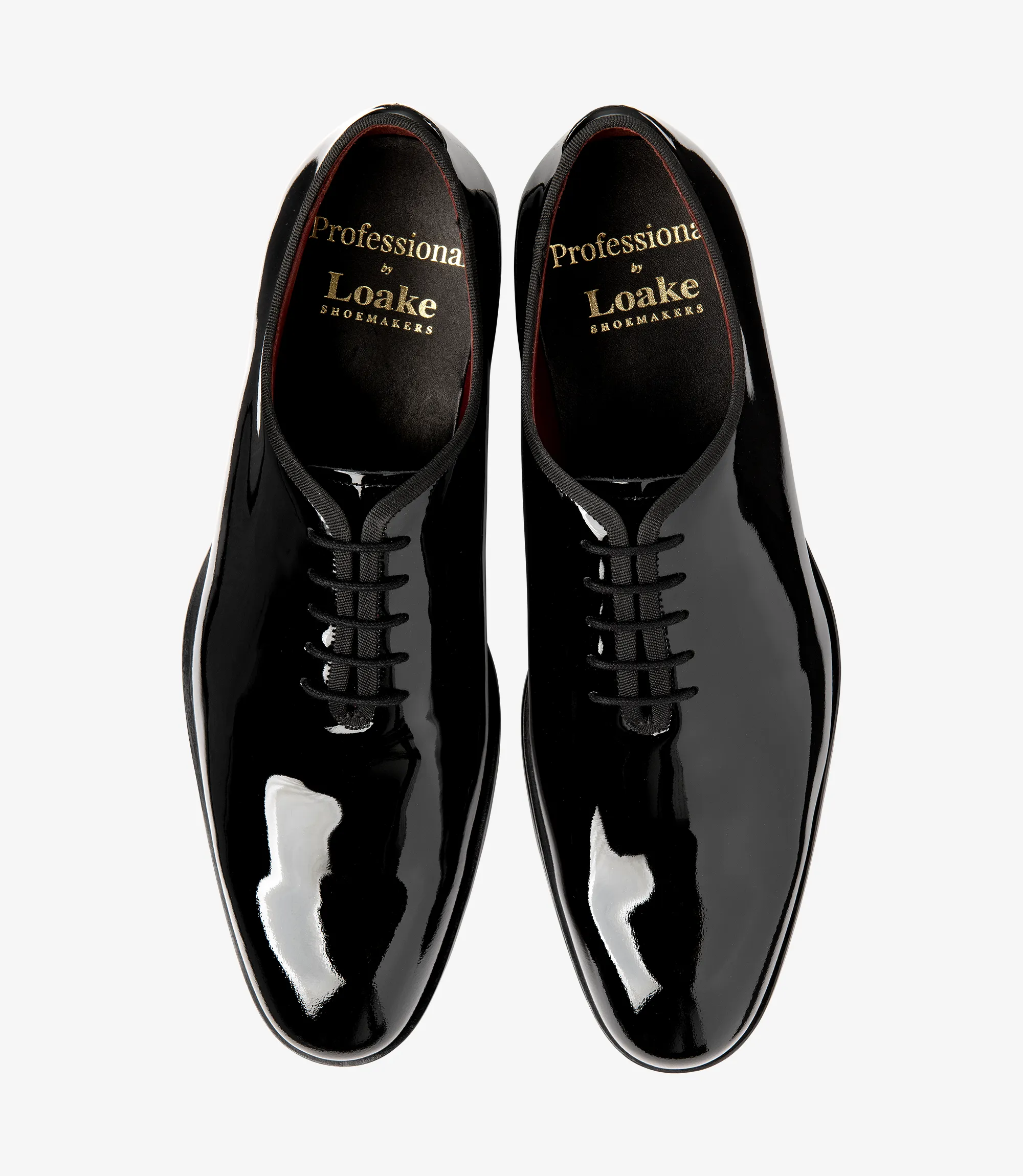 The Loake Regal is a premium black patent leather wholecut dress men’s shoe, crafted for weddings, black-tie events, and other formal occasions. Built on the sophisticated Claridge last, it offers a sleek profile and a comfortable F fitting, delivering elegance with ease. Featuring cemented leather and rubber soles, Regal combines durability with refinement, ensuring reliable wear while maintaining a polished appearance. Designed and engineered in Kettering, Northamptonshire, and handmade in Loake’s high-grade factory in India, it reflects the same craftsmanship and attention to detail seen in our Northamptonshire-made footwear. A timeless choice for formal ensembles.
